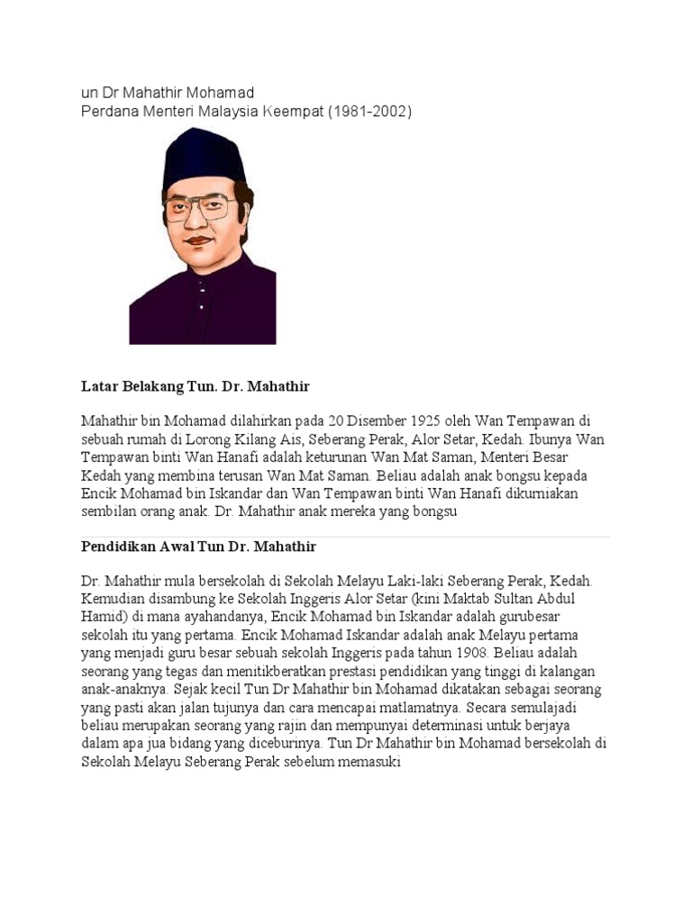 Related : Latar Belakang Tun Dr Mahathir - Mahathir bin mohamad on facebook..